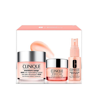 کرم Clinique Moisture Surge با فناوری هیدراپلاس، رطوبت را به عمق پوست رسانده و آن را تا ۱۰۰ ساعت حفظ می‌کند. این پک شامل ۳ عدد کرم است که برای استفاده روزانه و سفر مناسب می‌باشد. با استفاده منظم از این محصول: